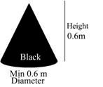 -a cone shall have a base diameter of not less than 0.6 metre and a height equal to its diameter;