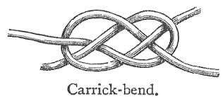 8. Carrick bend: It is used to join two hawsers together when the joint has to pass over the warping drum.
