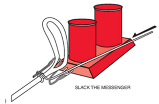 8. Slack the messenger line, the toggle will release itself and the messenger will be freed and the mooring line will slide free.