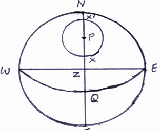 - Polar distance(PX) + lower meridian altitude (NX’)= Altitude of the pole (NP)