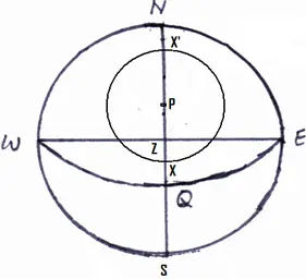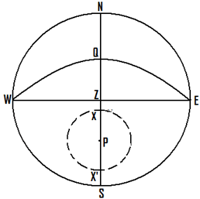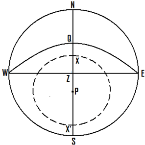 - Draw the rational horizon, place the body at the upper transit (X) and lower transit (X’)